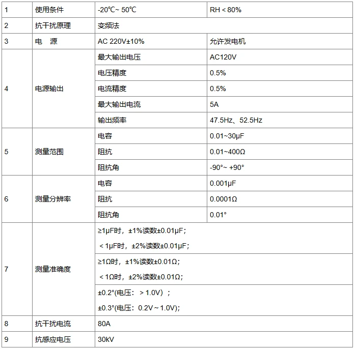 抗干扰能力强,由仪器内部自带变频器输出电源,频率可变为47.5Hz或52.5Hz,并采用数字滤波技术,有效地避开了现场各种工频干扰信号,使仪器实现高精度、准确可靠的测量。