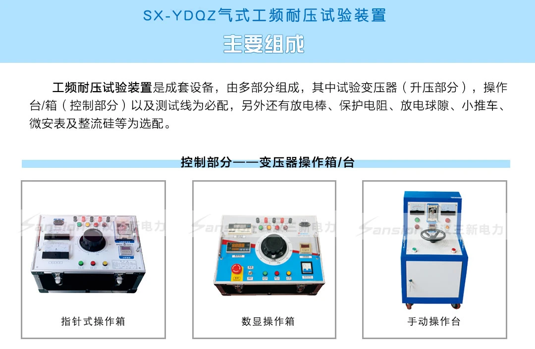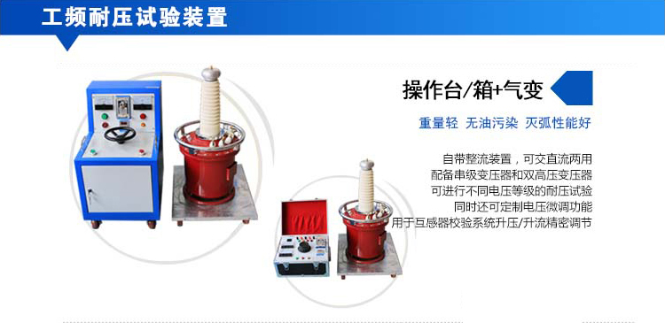 工频耐压试验装置为成套设备,由SXTC系列操作部分加上试验变压器部分组成,可以任意组合。
